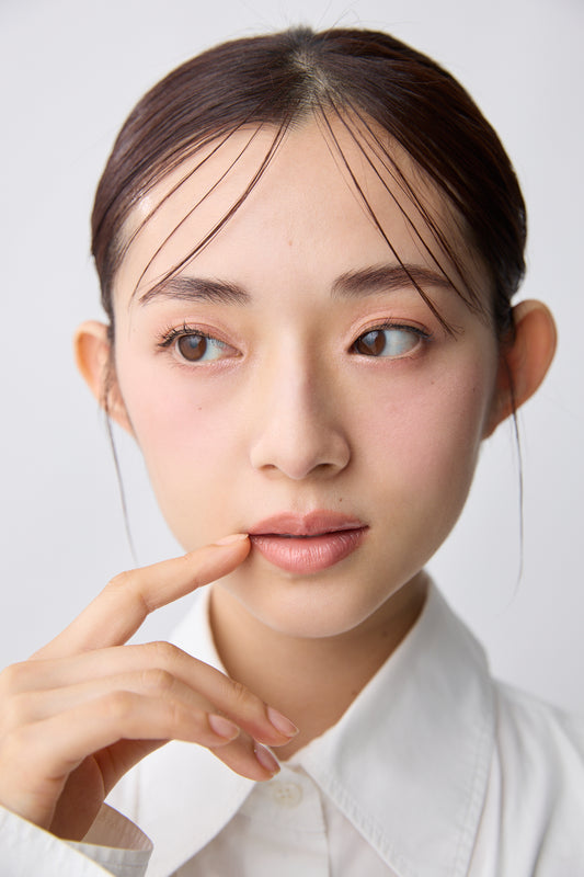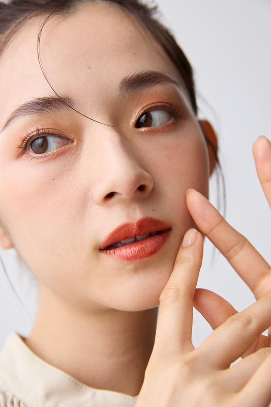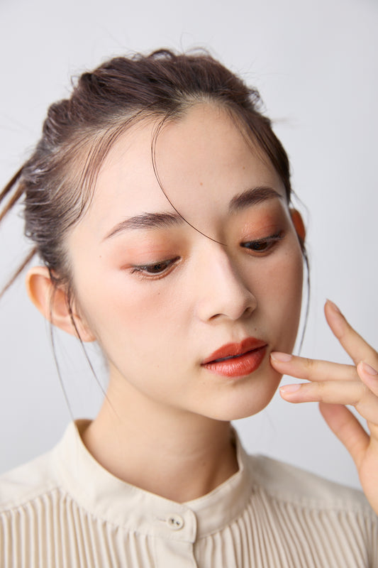 明るめの暖色系チークと相性抜群。 -